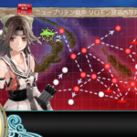 通常艦隊で攻略しました。航巡1隻or水母1隻をここで切ることができれば、航巡or水母x1、軽巡x1、駆逐4で割と楽に周回ができます。どちらが良いのかはお好みで。基地航空隊は第一をBマスに、第二をボスマスに飛ばしました。支援はなし。