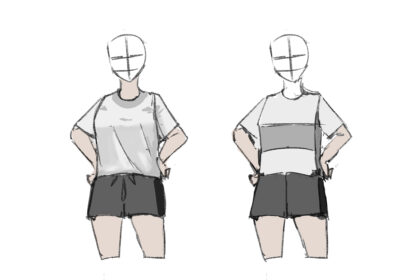 瞳孔を描いたらまぶたの影をいれよう。これを見ると白目と瞳孔の影のラインを繋げて描く人もいるし、白目と黒目で影の厚さを変える人もいる。好きにしてほしいが、デフォルメは目が大きいので影を厚く描くと違和感が出る。そのため薄く描く。しかしこれは好みの問題だ。理論的には間違っているがきれいなら良いのだ。なぜならデフォルメだからだ。