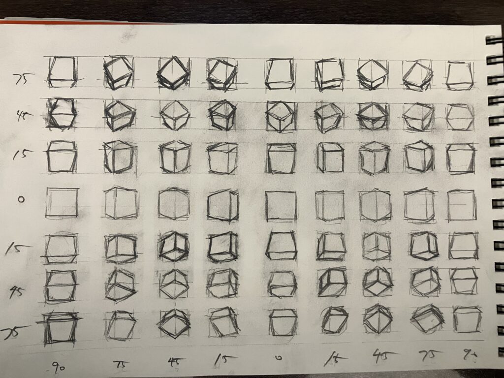 最後は立方体の練習。スケッチブックが小さいのでざっくり。あまり時間がなかった。もう少し丁寧に描けばよかったのだが…。