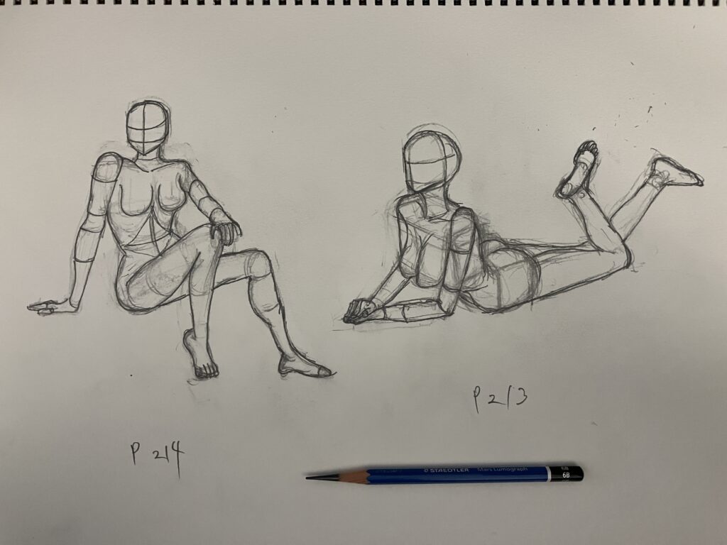 今回も講座内で絵は描いてないのでラッキ本から2体模写。描いている時は気付かないがやっぱり人体が固い。練習を通じて少しずつ動勢がとれている人体に近づけていきたい。