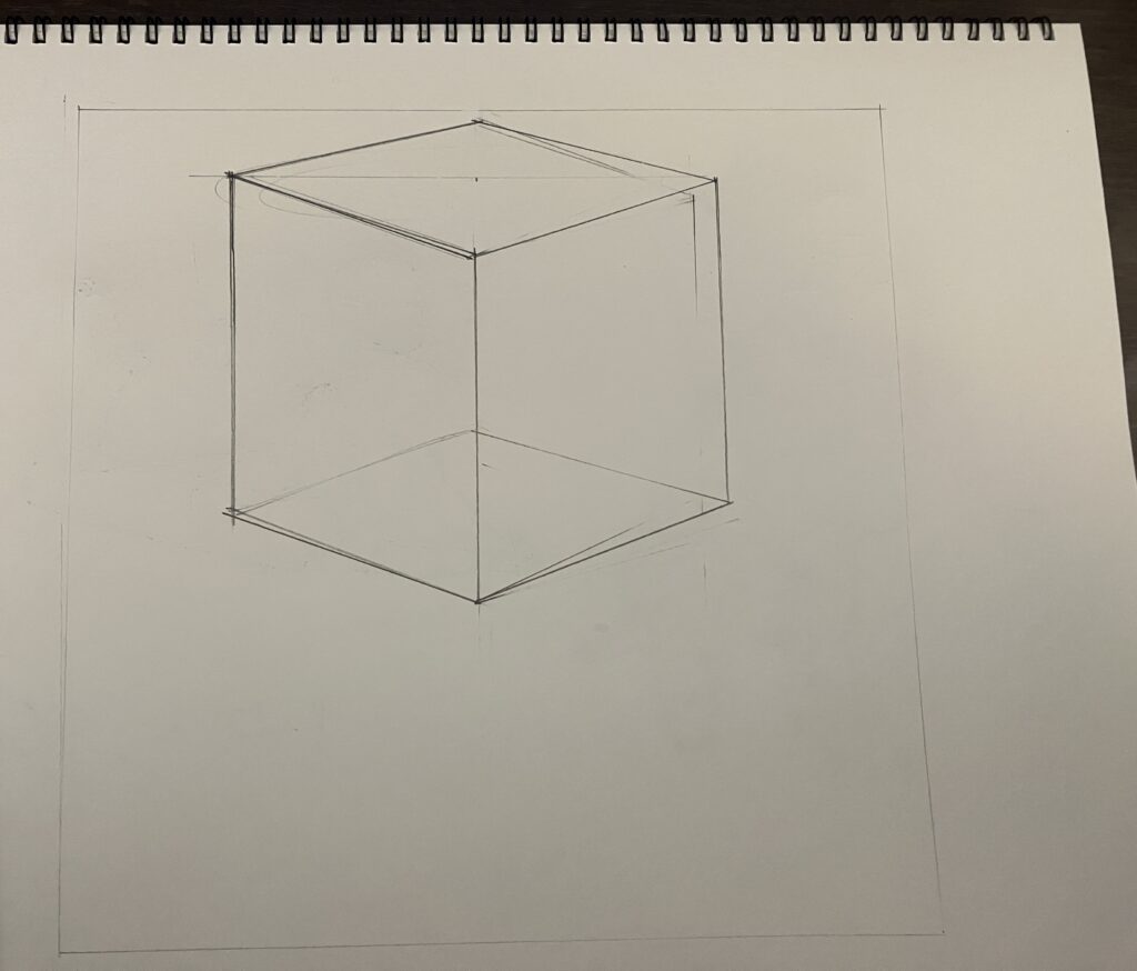 今回時間が無いのでここまで。立方体しか描いとらんやんか!とツッコまれそうだが次回から描き込んでいく。デジタルでいくかどうか迷ったけどアナログで。色塗ることがあればデジタルでやるかも。