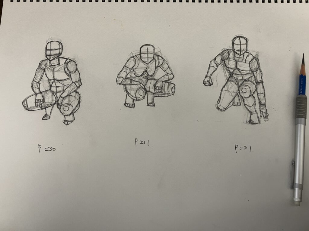 今回はスケッチ段階なので真似はせずに見ているだけにした。牧田先生はアイデアを捻り出すのに結構苦労していて、あーでもないこーでもない、と試行錯誤している過程が参考になった。プロの人達でも試行錯誤しているんだから、私も試行錯誤することを恐れずにたくさん練習して作品をつくっていきたい。