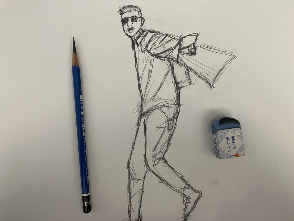 クロッキー。きれいな線を見つける練習をしよう。頭を使って強弱をつける。悩み続けることがポイントなのだ。
