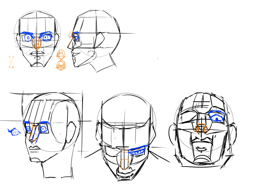 今日は鼻、口、耳について。鼻から。おでこの面から眉間までつながるカーブ。カーブして出てきた箇所を覚えておこう。鼻が高い人の場合、目のくぼみとの距離が離れる。鼻尖があって、小鼻がある。鼻尖のしたは軟骨がある。両側の小鼻は面になっている。ダイヤの形をした底面には鼻の穴がある。鼻の下は一般的に鼻の穴は少し上がったように描く。イメージの確認。欧米人は鼻が角ばっている。東洋人は全体的に緩やかだ。鼻は形をそのまま描くだけでなく、影になる所を描くだけというやり方もある。影を描くと面になり結果として鼻の表現になる。上から見ると短縮が働く。鼻の穴は見えない。上からは鼻の穴が多く見える。鼻の底面は三角形になっていて鼻筋はほぼ見えない。(続く)