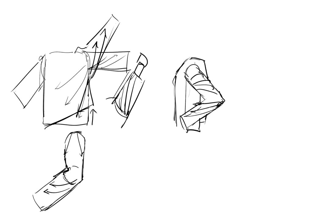 改めて見ると難しい、シワの回。この章も1時間超えなので3回か4回に分ける予定。上腕と前腕でシワの流れが異なることは完全に忘れていた。今回は胴体と手の練習も合わせてやってみた。次回は週明けの予定。